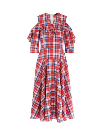 MARYLING Red white v-neck rope print dress