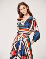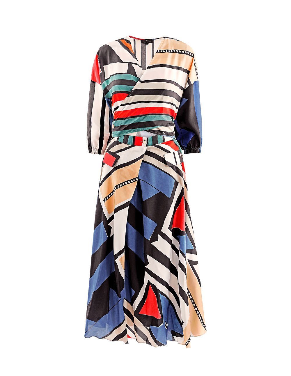 MARYLING Silk Ndebele Style Pattern V Neck A-Line Midi Dress