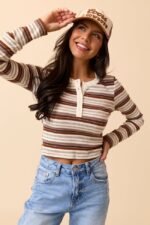 Tags: 20SaleSept25ADD, 9/16NAN, Ambassadors, Bestsellers, BFEmployeeDiscount, Brown, Capsule: Varsity Prep, CasualTop, Category:Tops, Clothing, Clothing/Tops, Clothing/Tops/Basics, Collection: 2025 September NA, Color:Brown, DiscountCode, Dvn:B, FallStyles, Neckline:Crew Neck, New, New14, Print:Stripes, PromoCode, Season:Fall, SeptemberNA25, SitewideSale, size_chart_clothing_new, Sleeve:Long Sleeve, Style:Basic, Style:Shirt, Tops, YCRF_generic, YGroup_taryn_top